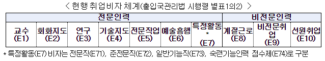 분야별 취업비자 발급 총량 설정